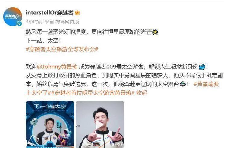 当所有人以为他将在争议泥潭与角色窠臼中继续内耗时,2026年初,黄景瑜掷出了一张打破所有剧本的王牌——成为国内商业航天公司“穿越者”的009号太空游客。与其耗费数年自证清白,不如用更具爆炸性的新事件,以光速刷新公众记忆硬盘。前行速度够快,争议的引力就追不上你,资本与市场永远追逐最新、最热的故事,一张太空船票的故事,远比一段纠缠不清的旧情更有传播价值。